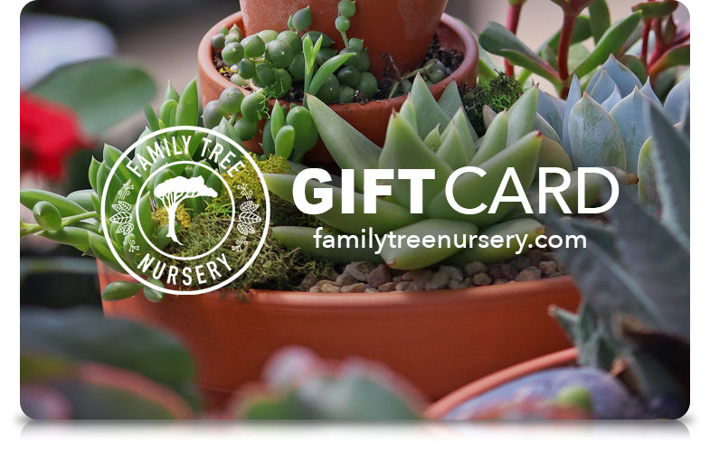Purchase an eGift Card for yourself or send one as a gift. Our eGift Cards can be used towards Family Tree Nursery in-store purchases at any of our three locations.
