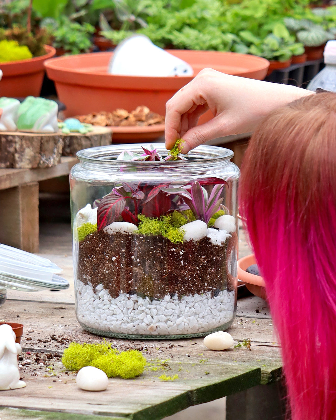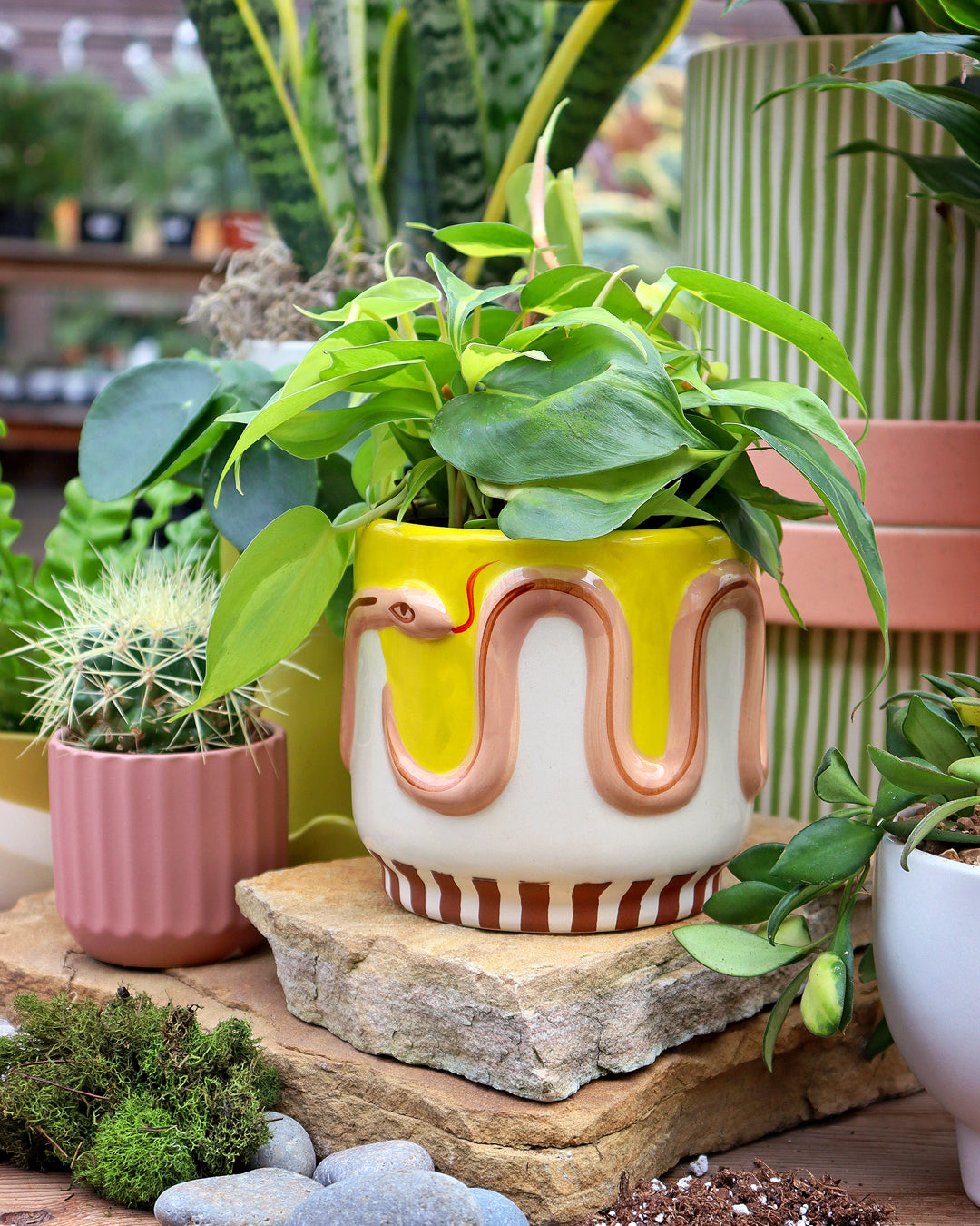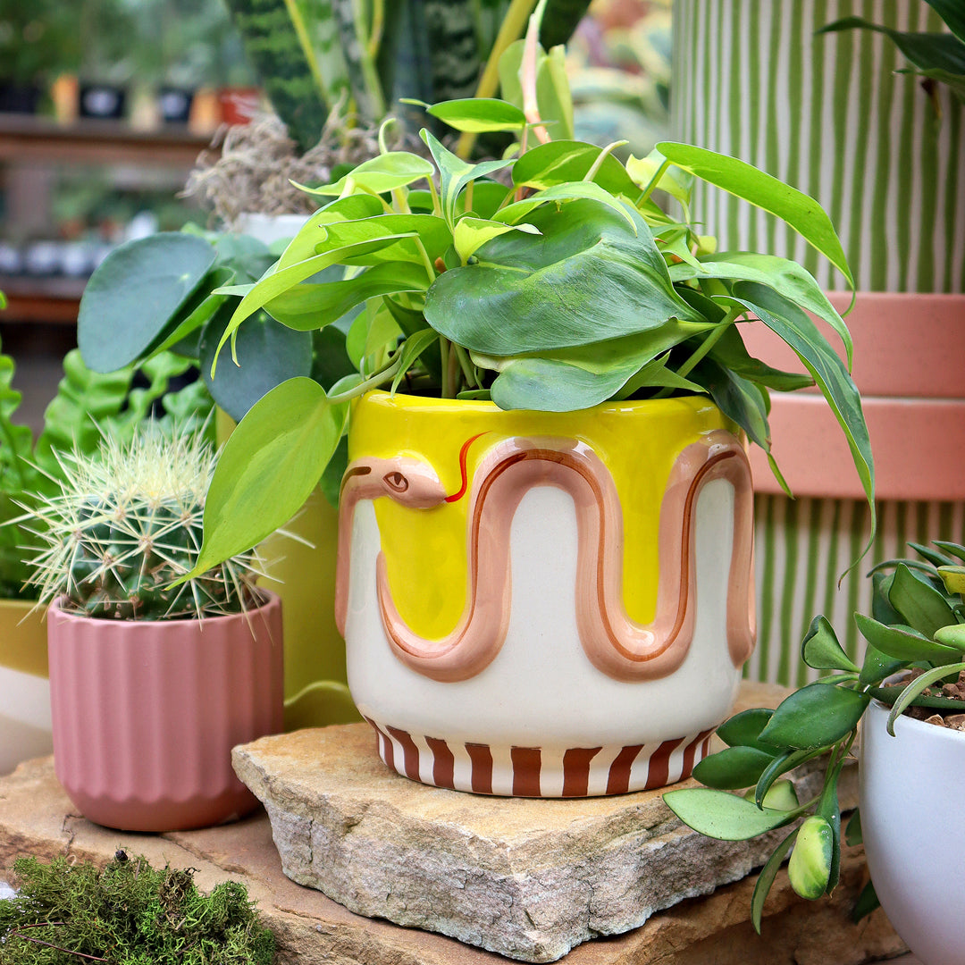 We offer a year-round selection of classic, trending, and hard-to-find houseplants. Choose from a vast selection of varieties and sizes. Don't forget to pair your plant with the perfect piece of pottery. Additionally, keep an eye out for our free potting events, which we host multiple times throughout the year.